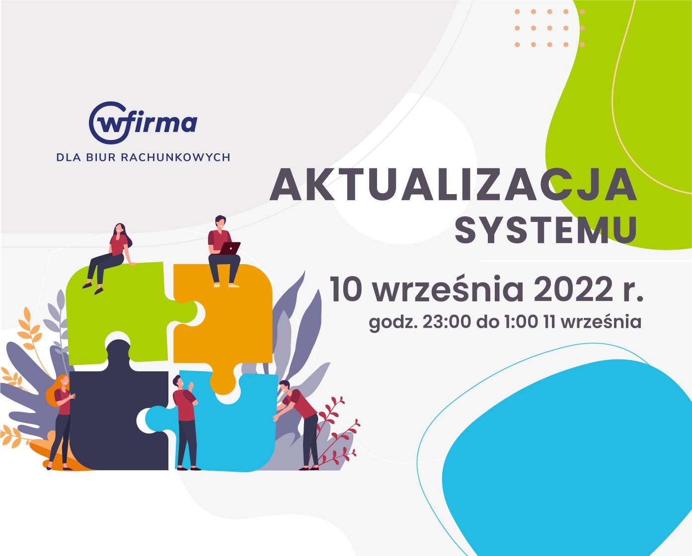 Szanowni Państwo, informujemy, że dnia 10 września od godz. 23:00 do godz. 01:00 dnia 11 września nastąpi aktualizacja systemu wFirma dla biur rachunkowych.
